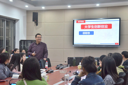 最后,张益凡以我院学生创新创业项目进行分析,指出了问题,提出了建议。就学校以及我院特色以及大赛获奖趋势,认为我校创新创业项目可将专业与项目相结合,重点突出学校特色。