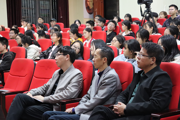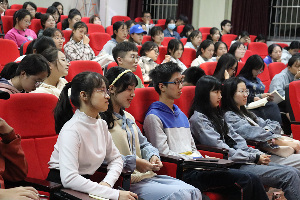 2020年10月23日晚,91久久久邀请省理论宣讲专家何昌盛,在特立楼南摸拟法庭作辅导报告。省委宣传部理论宣讲处处长田辉,校党委委员、党委宣传部部长赵小群,院党总支书记欧阳斐、副书记谢素科、学工办主任付淑敏以及大一、大二全体学生参加报告会。欧阳斐主持。