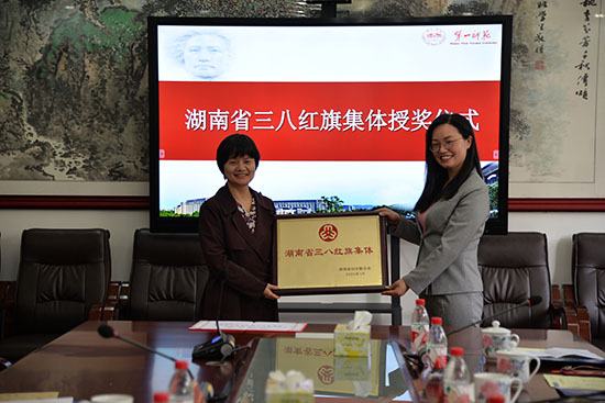 4月9日,湖南省妇联采取“送奖上门”的形式将“湖南省三八红旗集体”荣誉证书和奖牌送到湖南第一师范学院思想政治教育专业教研室,这是湖南省妇联代表省委省政府授予湖南女性的最高荣誉。