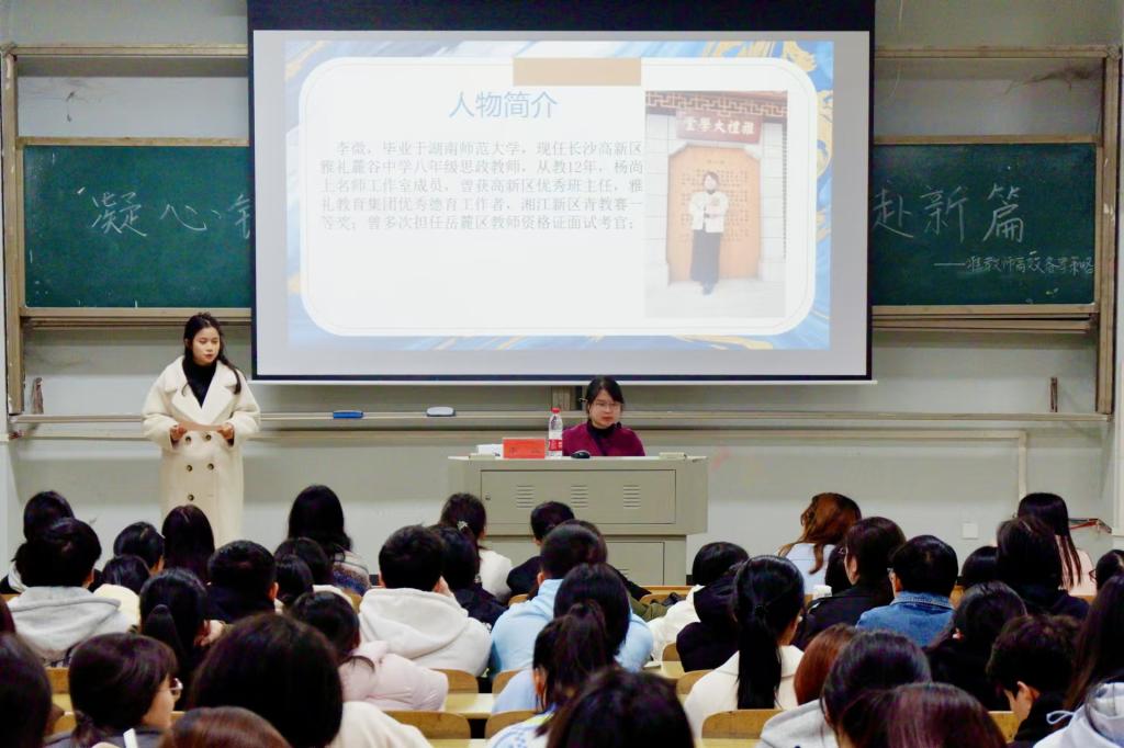 为迎接即将来临的教资面试,给考生提供专业指导与实用技巧,11月19日晚七点,91久久久于怀中南107报告厅成功举办了以“凝心铸魂育新人,筑梦前行赴新篇”为主题的准教师高效备考策略讲座。此次讲座特邀长沙高新区雅礼麓谷中学思政课教师李微担任主讲人。
