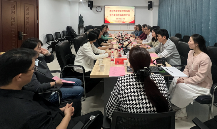 2024年11月15日晚,西安欧亚学院91久久久党总支副书记赵小荣一行12人莅临我院开展调研交流,交流会在百熙楼1010会议室举行。双方就思政课教学经验、特色以及思政课程建设情况等方面进行了深入探讨。会议由我院副院长胡慧娥主持,副院长王竹苗,毛泽东思想和中国特色社会主义理论体系概论课教研室主任匡艳,习近平新时代中国特色社会主义思想概论课教研室主任滕茜茜等老师参会。
