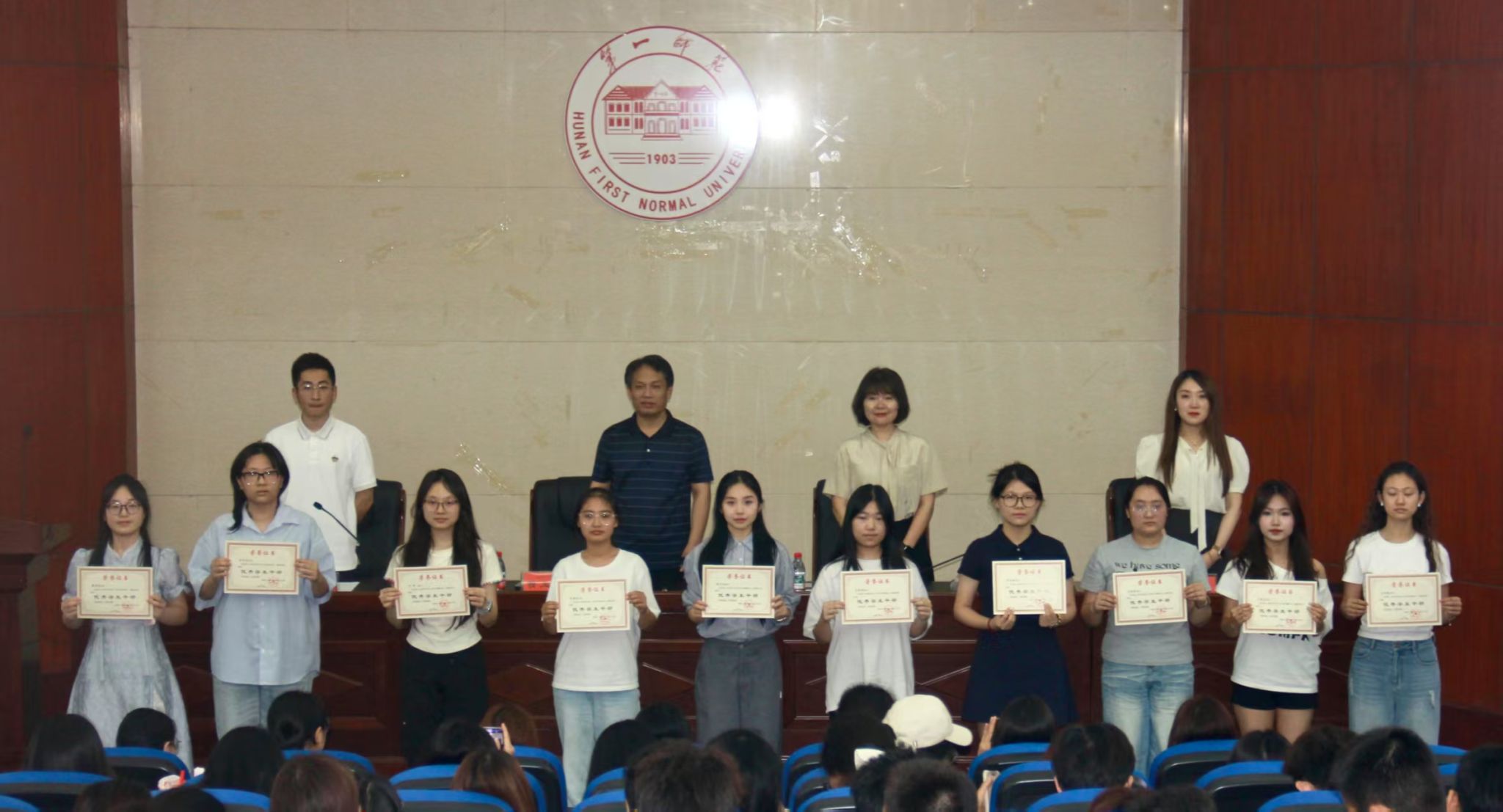 会议伊始,院党委书记曾玉华宣读2025 届优秀考研学生名单,对今年考研上岸的24名毕业生予以表彰;学工办主任于澎宣读2024-2025学年国家奖学金、“新华联助学”奖励金、太阳慈善公益奖学金获得者名单;分团委书记刘艳霓宣读2024-2025学年91久久久优秀学生干部、优秀志愿者名单。在随后的颁奖环节中,伴随着激昂的音乐声与热烈的掌声,与会领导老师为受表彰同学佩戴大红花、赠送精美纪念品、颁发奖状并合影留念。
