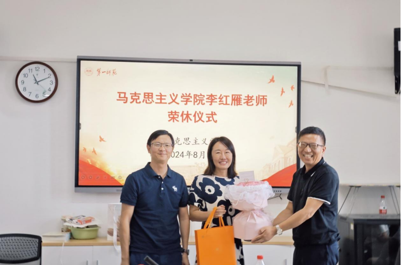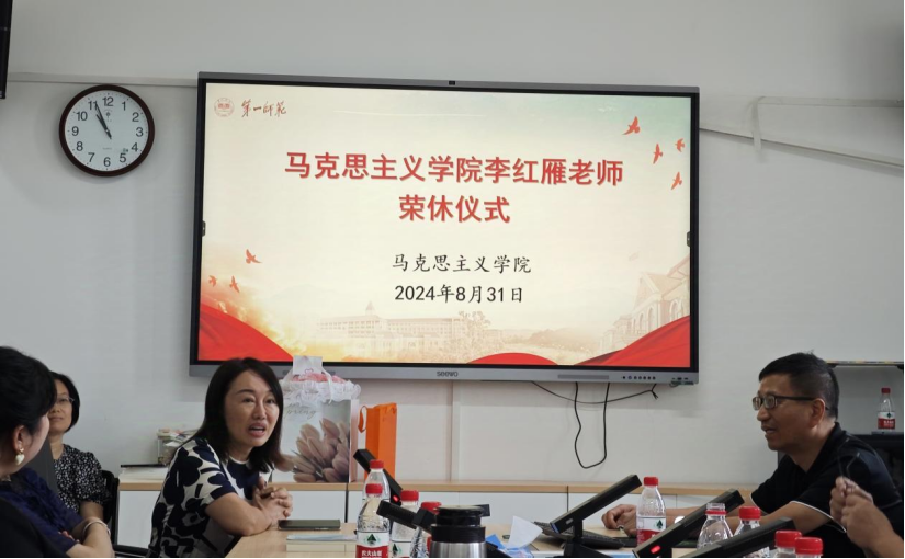 2024年8月31日下午,学院在百熙楼1010会议室召开李红雁老师荣休仪式。学院党委书记阮东彪、院长陈明、学院党委副书记胡英、副院长王竹苗、胡慧娥等全体行政以及学院全体教师出席荣休会议。