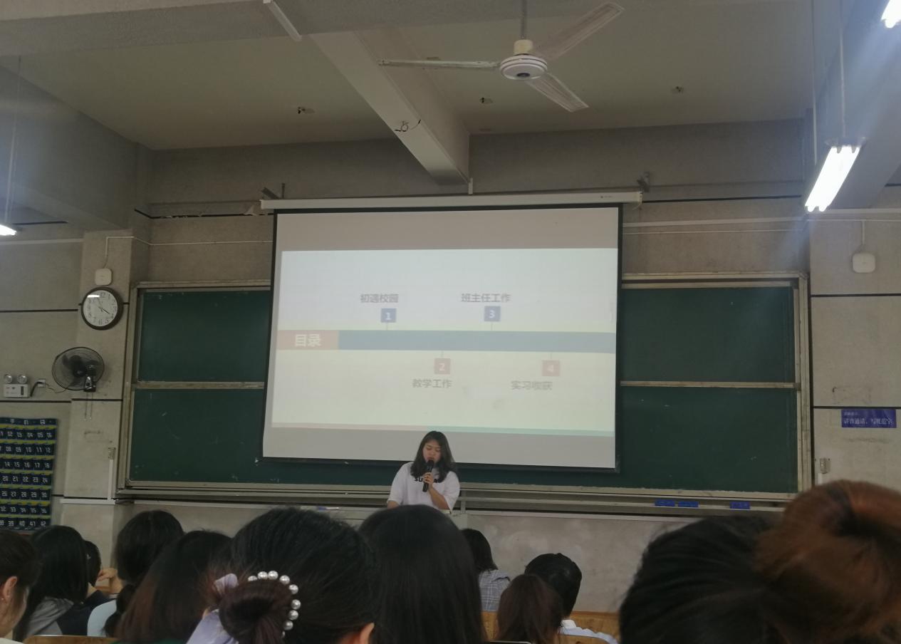 实习生代表汇报了实习经历和心得体会。18思政1班董婵娟、尹媛媛和罗嘉怡三位同学汇报了自己在实习期间的备课、上课、批改作业和课外实践活动等实习经历,也谈到了在长沙市高新区雷锋二小以及在岳麓区周南梅溪湖小学的实习收获。18级765思政班覃青姣、郑子涵等同学分享了在她们家乡中小学实习的经历和心得体会。经过三个月的实习,同学们在各方面都有了长足的进步。同时,他们深深感受到,大学生不仅应努力加强专业知识和技能的学习,更重要的是应不断提高自身综合素质和能力,学会如何做人做事。