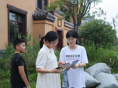 “您好,我们来自湖南第一师范学院,来到黄材镇进行‘推普助力乡村振兴’社会实践活动…”遇到晚饭后出门散步的当地村民,宣讲团成员拿出“理论普及汇编册”热情地向他们进行自我介绍,并在征得对方同意后向其细细讲解宣传册中的内容,当地村民也对宣讲内容抱有极高热情,纷纷表示“手册中的内容很实用,将带回家中与亲人共同学习”。