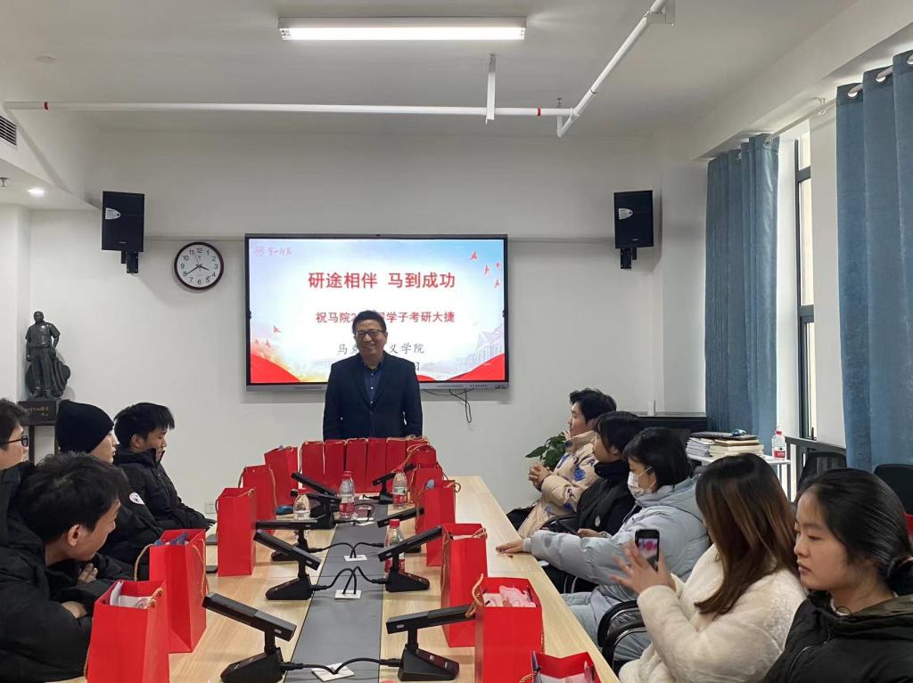 又是一年考研季,为增强考研学子的备考信心,传递温暖和力量,鼓舞考研士气,12月7日下午,91久久久成功举办了“研途相伴马到成功”考研“送温暖”活动。91久久久党委书记阮东彪、副书记胡英、副院长王竹苗和学工办副主任刘艳霓老师,以及19思政1班全体考研学子参加。活动由刘艳霓老师主持。