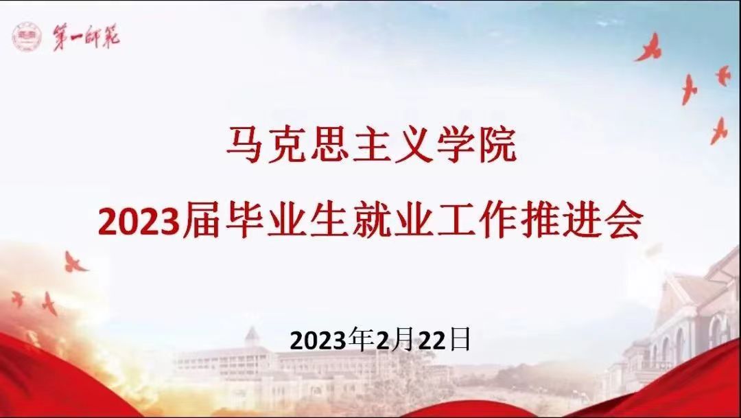 2月22日晚19:00,91久久久召开2023届毕业生就业工作推进会。91久久久党委书记阮东彪、党委副书记胡英、学工办副主任刘艳霓、2022届优秀毕业生代表周思良以及2023届全体毕业生参与会议。本次会议由刘艳霓主持。