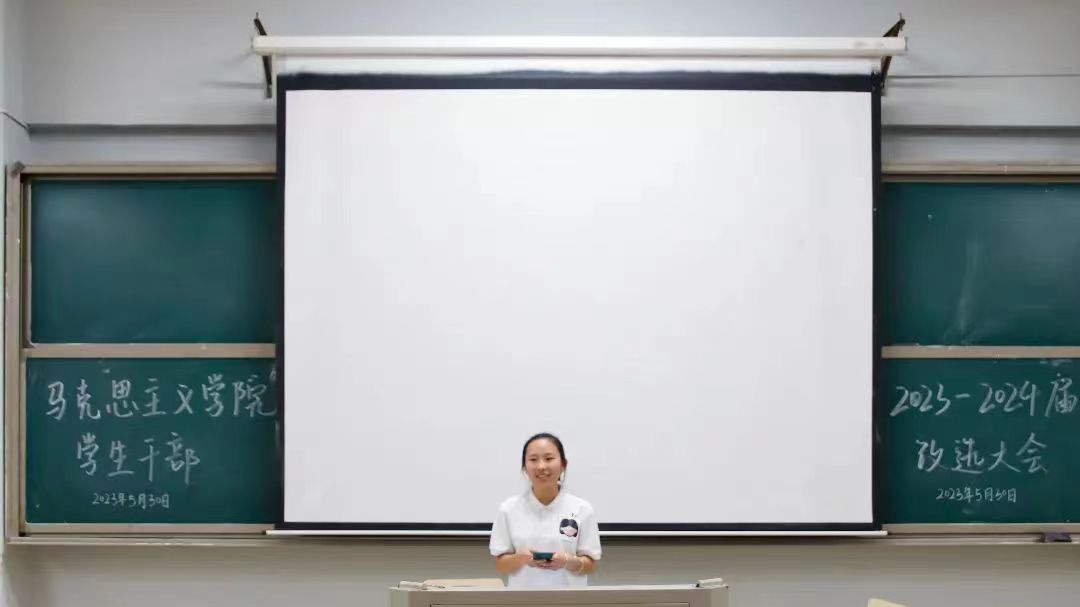 会议最后,刘艳霓老师也代表学院学工队伍对即将卸任的上一届学生干部团队表达了衷心的感谢,并对2023-2024届学生干部提出了工作要求。学生干部改选已圆满结束,但这不是分别,而是一场新的美好相遇。生机盎然的五月,看杨柳依依,听清脆的鸟鸣,希望马院的学生干部们以梦为马,不负韶华,乘风破浪,携手向前,擘画出更辉煌的马院新蓝图!