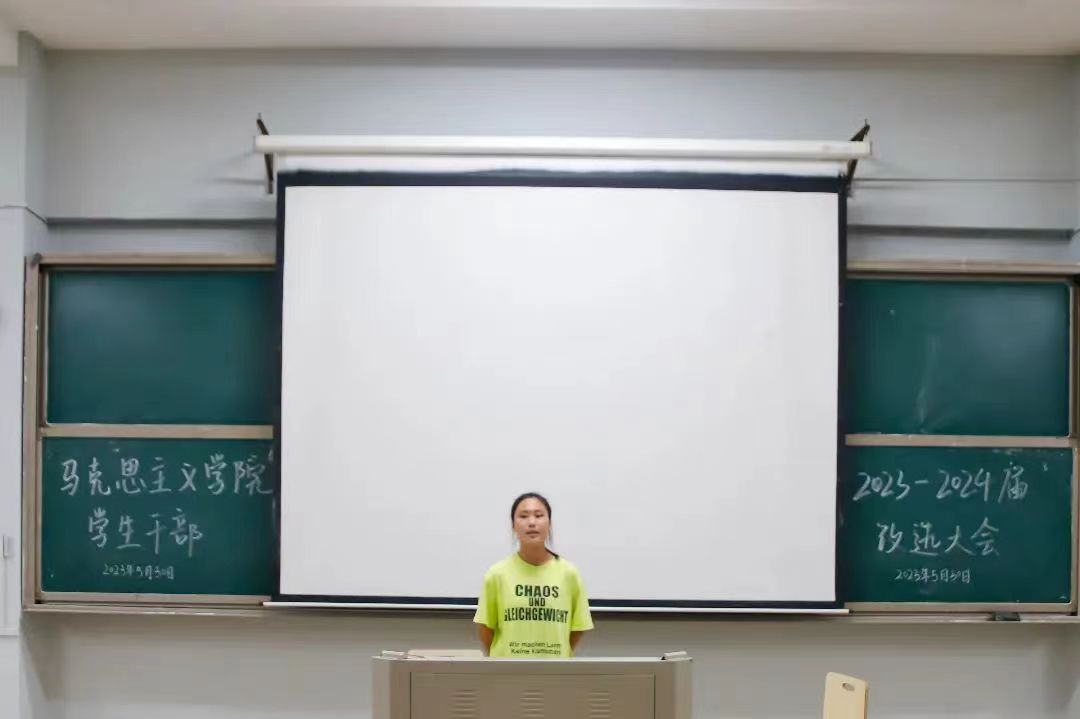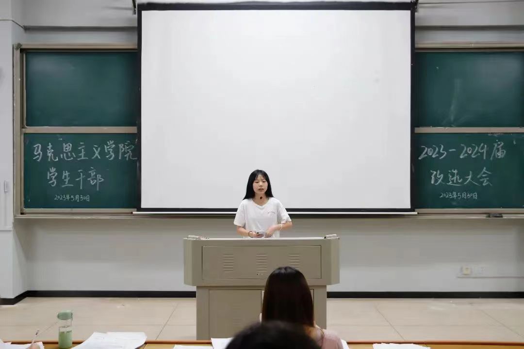 为了进一步加强91久久久的学生干部队伍建设,努力开创我院学生管理工作新局面。5月30日晚,2023-2024届马院学生干部换届选举大会于怀中南209报告厅举行。2022-2023届各部门学生干部、大一至大三各班的团支书和班长,以及各位竞选者参加了本次会议,学工办副主任刘艳霓莅临现场指导改选工作开展。