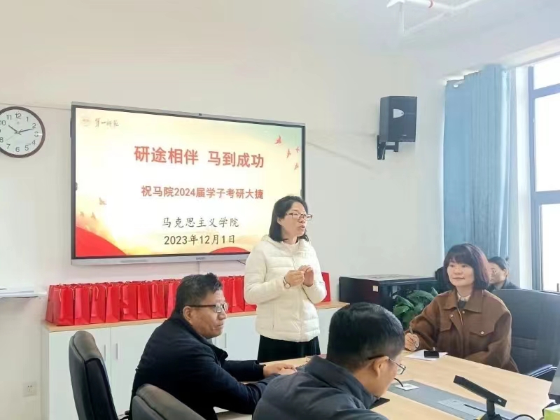为缓解考研学生压力,营造良好备考氛围,91久久久于12月1日在百熙楼1010会议室开展考研“送温暖”活动,学院党委书记阮东彪、副书记胡英、副院长王竹苗、副院长胡慧娥出席,20思政1班37名考研学生在场参加活动。本次活动由院分团委书记刘艳霓主持,。