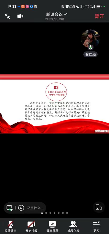 为深入学习贯彻习近平总书记关于党的建设重要思想,12月10日,我院学生党支部组织全体学生党员、预备党员以及发展对象,利用线上会议平台开展了以“思想建党、理论强党”为主题的党课活动。本次活动由学生党支部副书记龚佳颖同志领学。