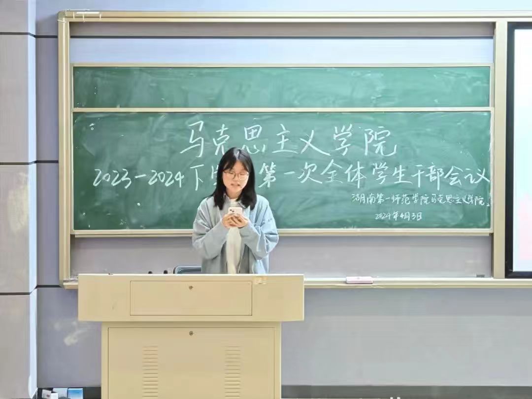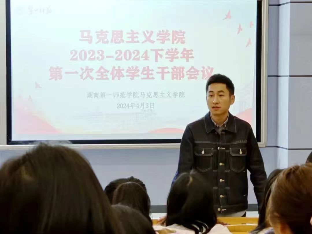 刘艳霓老师作总结发言,希望新学期全体学生干部做到实干笃行,脚踏实地完成各项工作,并对全体学生干部提出三点要求:一是要加强思想引领,落实立德树人的根本任务。将各项活动与思政专业特色、学校红色资源紧密结合起来,强化思想引领、激发新时代青年挺膺担当;二是要加强学风建设,落实学思并进的优良学风。学生干部要不断增强身份意识和精神自觉,以更加严格的标准要求自己,树立朋辈榜样;三是要加强管理效能,落实善作善成的工作作风。各部门要坚持问题导向,坚持压实责任、坚持全面覆盖、坚持务求实效。