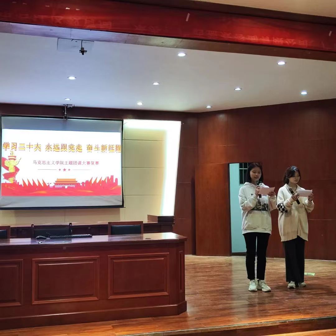 本次团课紧紧围绕“聚焦二十大,永远跟党走,奋斗新征程”的主题,以党的二十大核心内容分为三个主题:第一个为理论宣讲篇,向大家介绍党的二十大报告,集中体现党的二十大精神,弘扬伟大的建党精神,号召全体同学肩负使命,努力奋斗。第二个为发展成就篇,介绍党带领人民取得的历史性成就,从历史中汲取精神力量,坚定党的领导,奋进新征程,谱写新篇章。第三个为青春奉献篇,讲述平常而伟大的人身后的拼搏与奋斗,不负时代、不负人民,弘扬党的二十大代表作为优秀党员的奉献精神,发扬积极的榜样作用。在这次团课大赛中,马院学子热情响应,每个参赛班级都生动地展示了有关“二十大”的团课报告,把学习和贯彻党的二十大精神作为重要政治任务,思想和实践相结合,展示了马院学子积极向上的风范和高尚的爱国爱党情怀,这次团课大赛取得了圆满成功。