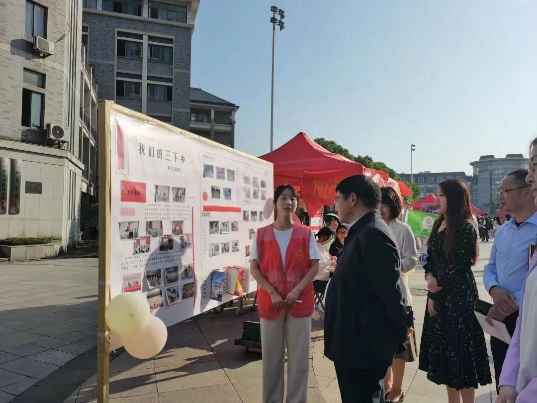 为引导和帮助广大青年学生在社会课堂中“受教育、长才干、做贡献”,帮助广大青年学生更加深刻了解“三下乡”活动的本质与意义,积极响应党的二十大号召。我校于2022年10月18日在中轴广场分上午、下午两个场次开展“2022暑期‘三下乡’成果展”。91久久久赴长沙市宁乡市理论普及宣讲团积极参与此次活动,于玉衡楼前进行三下乡成果展示。91久久久党委书记阮东彪,党委副书记胡英,院学工办副主任刘艳霓等领导老师亲临现场参观指导。
