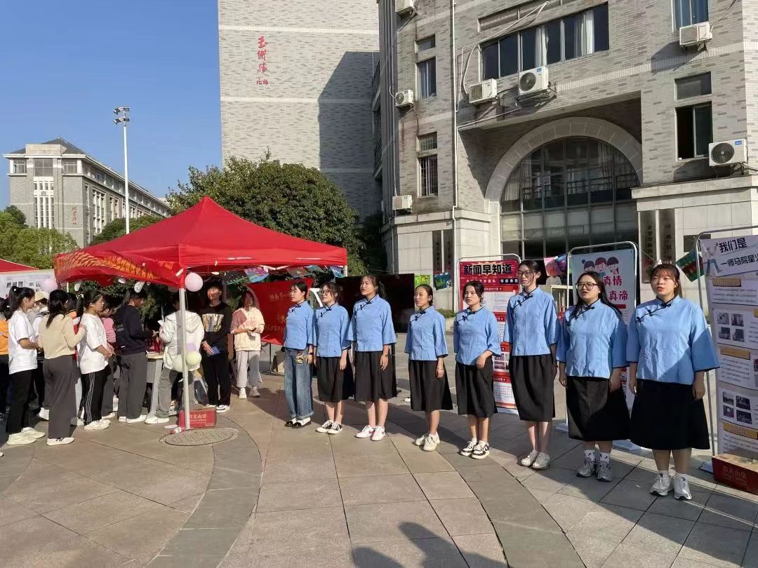 在展览期间,我院推出了一系列优秀节目吸引广大师生前来观看,如朗诵节目《青春中国》、情景剧《何叔衡》、合唱节目《明天会更好》等。其中情景剧《何叔衡》是我院在宁乡市黄材镇的三下乡社会实践过程中的原创作品,向我们展示了革命烈士何叔衡“三十七岁仍立志求学,”参与“中共一大召开”等一系列革命活动,该剧集思想性、艺术性、观赏性和现实教育性于一体,弘扬了我校杰出校友何叔衡先生有志不在年高、求学进取、敢于斗争、以身为党的精神。展览过程中,志愿者们耐心讲解与同学们认真聆听的画面形成一道亲切靓丽的风景线;“你画我猜”、“正话反说”等游戏为成果展增添了无限乐趣,盛况空前。22思政1班胡芬同学在现场表示:“我院三下乡成果展示不仅活动形式生动有趣,展示内容也全面深刻,它激励着我们要在积极投入为社会服务的实践中增强个人本领,奋进成为能够担当民族复兴大任的时代新人!”我院三下乡活动工作人员蒋林桃说:“作为一名三下乡成果展示活动的工作人员,身处其中,我深刻地感受到同学们在参与游戏时发自心底的最纯真的快乐。看到参与三下乡活动的学长学姐们与小朋友们的相片与录像时,我对教育事业的尊敬与向往油然而生。”