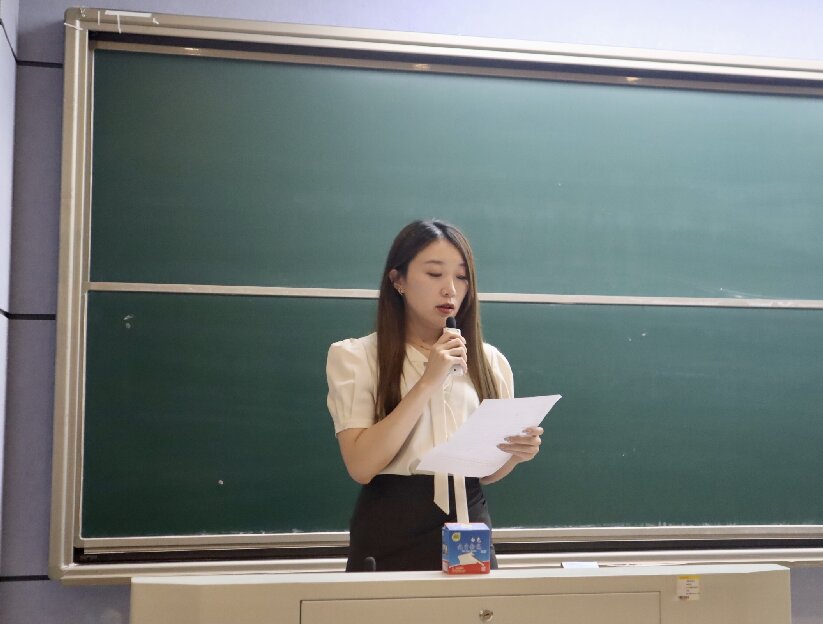新干部任职仪式上,于澎老师宣读2024-2025届学生干部名单,并向他们表示祝贺,随后,三位老师上台为新一届的学生干部颁发聘书并合影留念。最后,分团委学生副书记蒋京素和学生会主席团轮值主席袁雅琴上台发表就职宣言。她们在发言中总结过往、展望未来,并代表全体学生干部郑重表态,将秉持服务同学、奉献校园的宗旨,以身作则,积极进取,为学院的繁荣发展和同学们的成长进步贡献自己的力量。