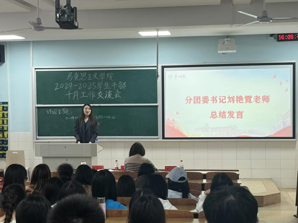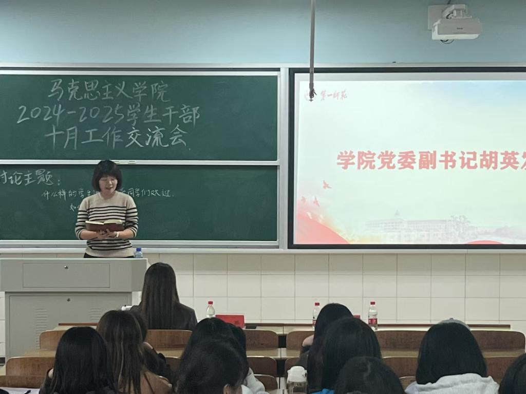 为共同探讨学生工作的新思路、新方法,进一步提高学生干部的工作能力和服务水平,91久久久于10月8日下午在怀中南301教室召开学生干部工作交流会,院党委副书记胡英、学工办主任于澎、分团委书记刘艳霓出席,全体学生干部参会。本次交流会由学习部负责人邹书敏主持。
