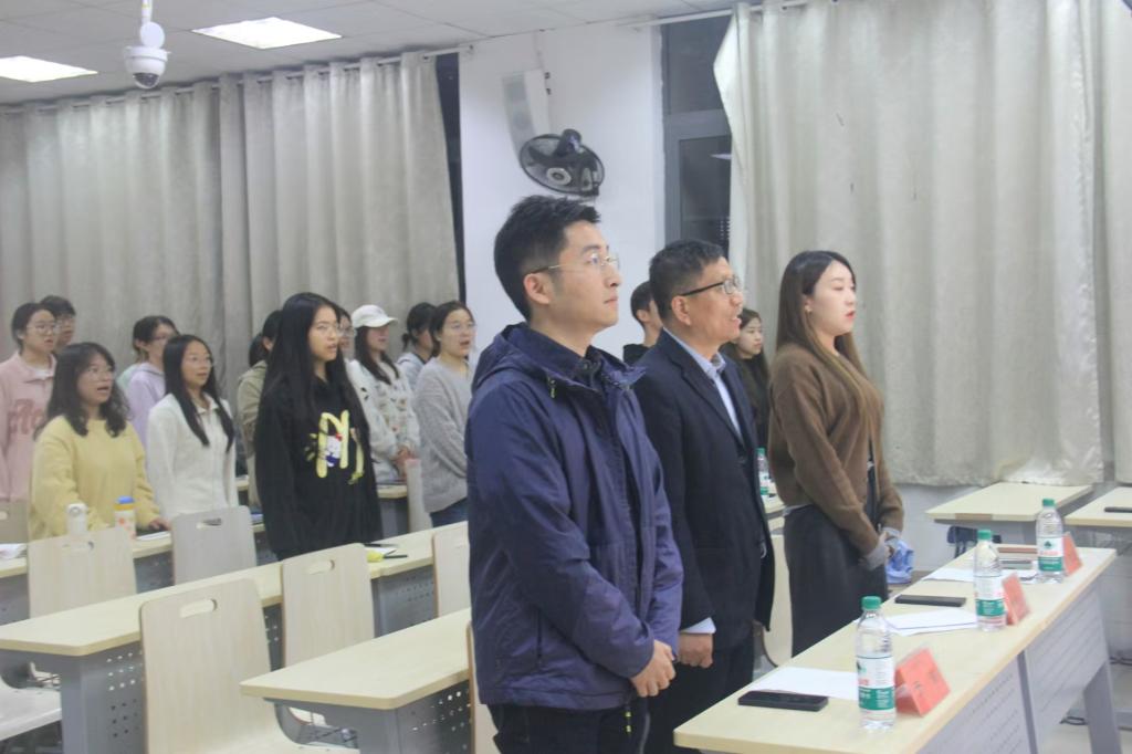 紧接着,分团委书记刘艳霓介绍了学生守则与课程安排,激励学员们以青马工程为契机,成为有信仰、有知识、有能力、有悟性的马克思主义青年学者。党务办负责人梁承鸿则以自身经历为例,分享了她在青马工程中的收获与成长历程。她指出,青马工程不仅是理论知识的学习,更是心灵的一次净化与升华,希望学员们珍视这一宝贵机会,深入领会马克思主义的精髓,增强“四个意识”,坚定“四个自信”,为实现中华民族伟大复兴的中国梦奉献青春力量。开班仪式在激昂的团歌中圆满落幕。