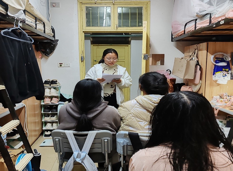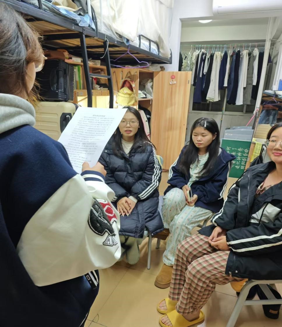 活动当晚,心育部成员首先进行了简短的培训,以确保每位成员都能明确清晰地传达宣讲要点。随后,宣讲活动正式开始。心育部成员分组前往各班寝室,活动中,成员们宣讲内容丰富多样,涵盖了日常生活中俯拾皆是的小确幸;除此之外还分享了在日常生活中发现幸福的方法以及培养一颗善于感知幸福之心的途径,同时也积极引导同学们以全新的视角去观察和体验生活,以积极心态应对挑战。