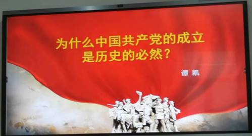 其次分享的是理论教学:“为什么中国共产党的成立是历史的必然?”这是全省思政课开放式课堂的展示课。谭凯从中国革命发展的必然要求、中国人探索国家出路的必然产物、中国工人运动发展的必然要求、中国共产党成立的意义四个方面进行了深入全面的阐释。